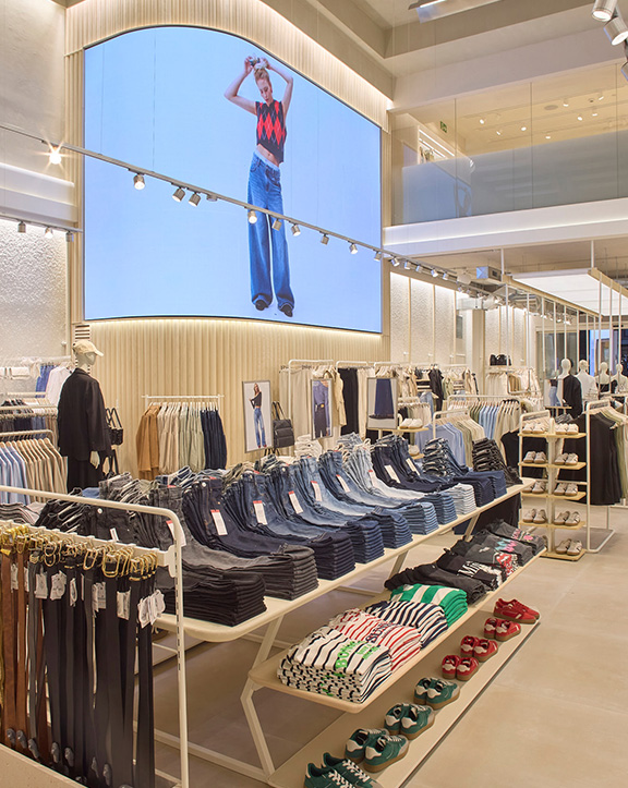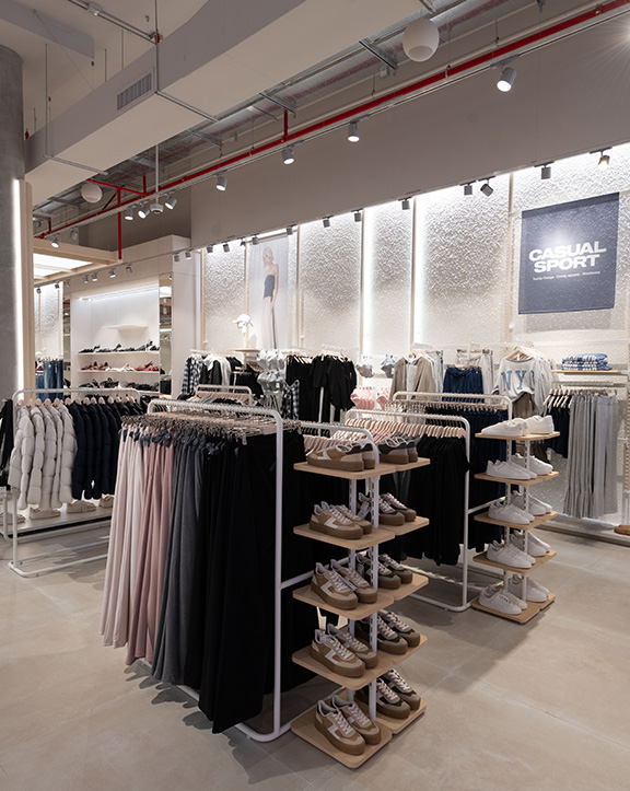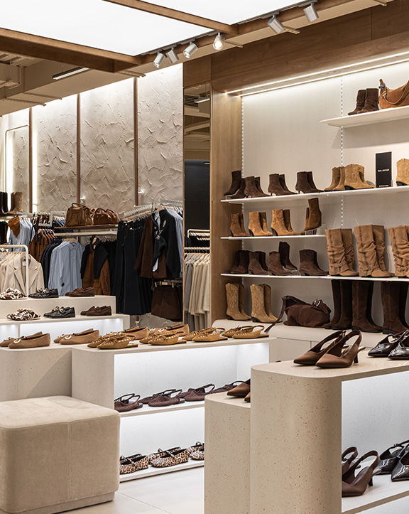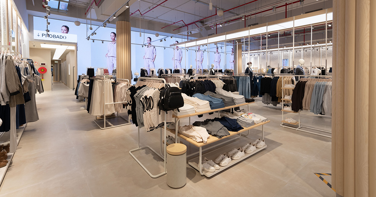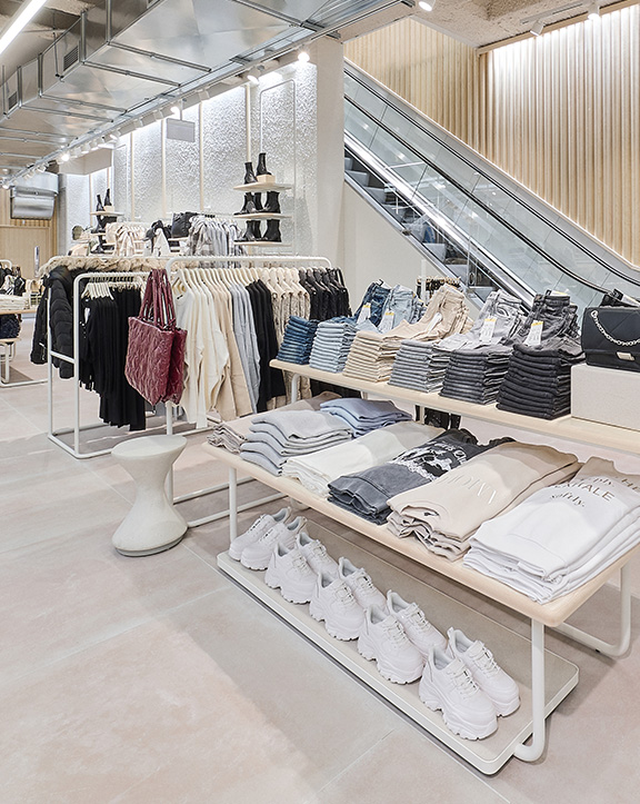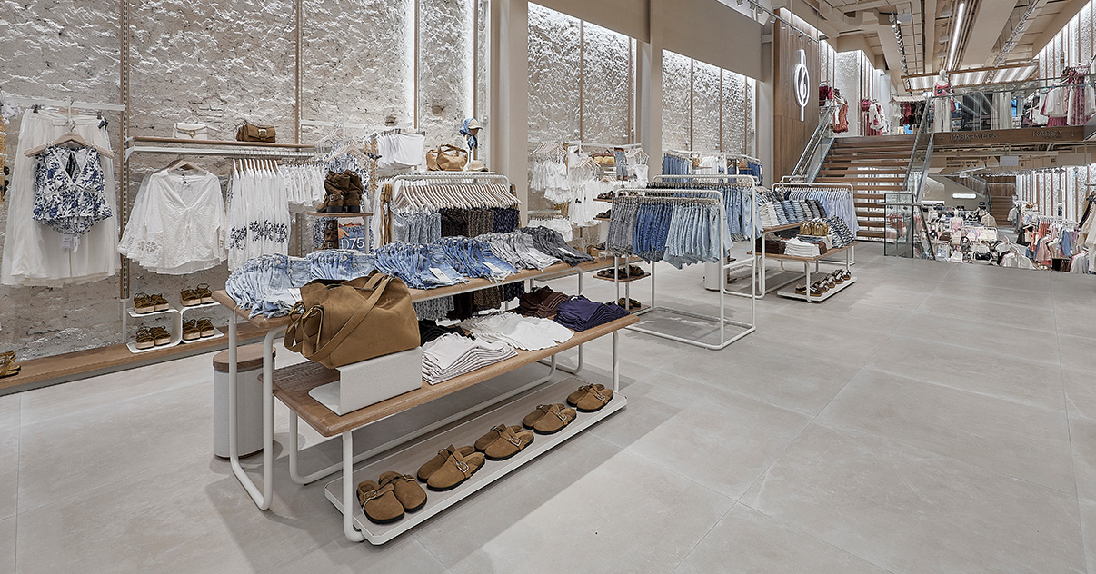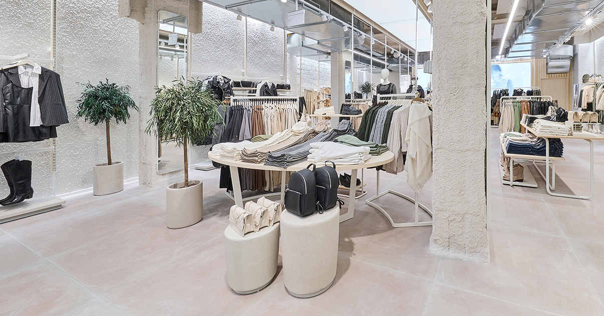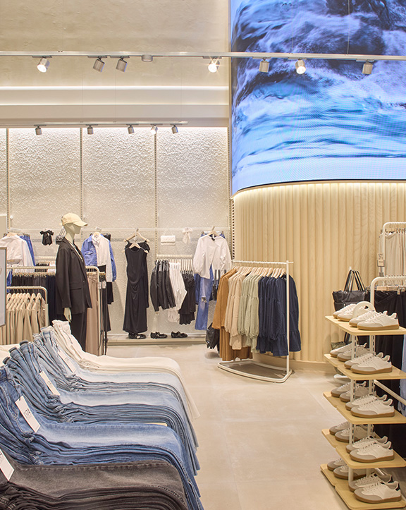 Nuestras tiendas están diseñadas para que moda y experiencia converjan. Si bien su diseño evoluciona para adaptarse a las necesidades de cada momento, nuestro concepto WAVE responde a una estética minimalista, de formas y acabados redondeados y con una paleta de blancos, grises y beiges.