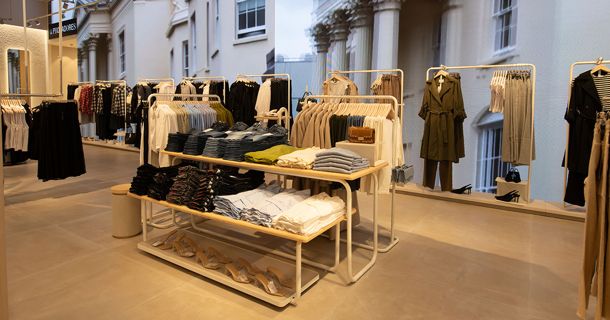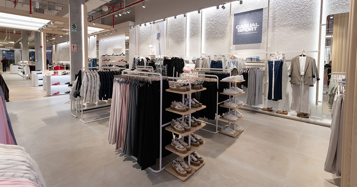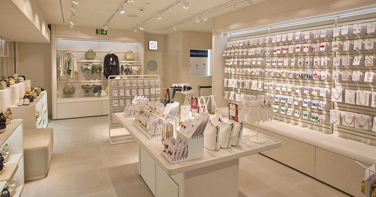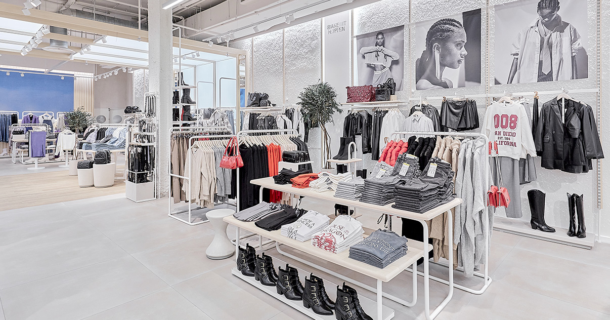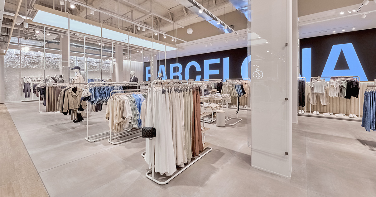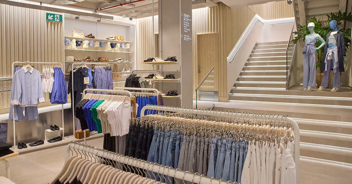 Nuestras tiendas están diseñadas para que moda y experiencia converjan. Si bien su diseño evoluciona para adaptarse a las necesidades de cada momento, nuestro concepto WAVE responde a una estética minimalista, de formas y acabados redondeados y con una paleta de blancos, grises y beiges.