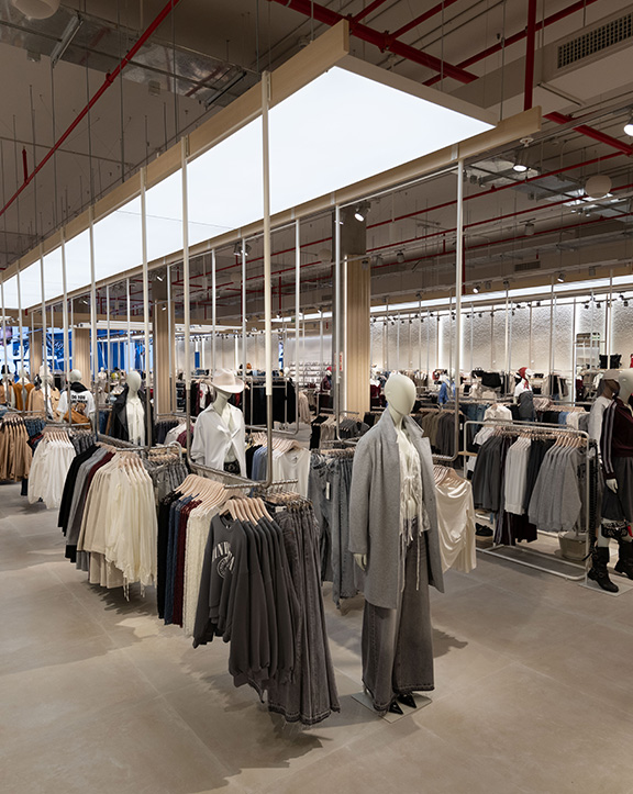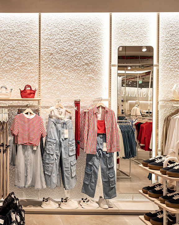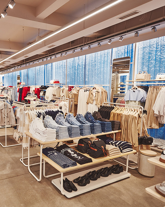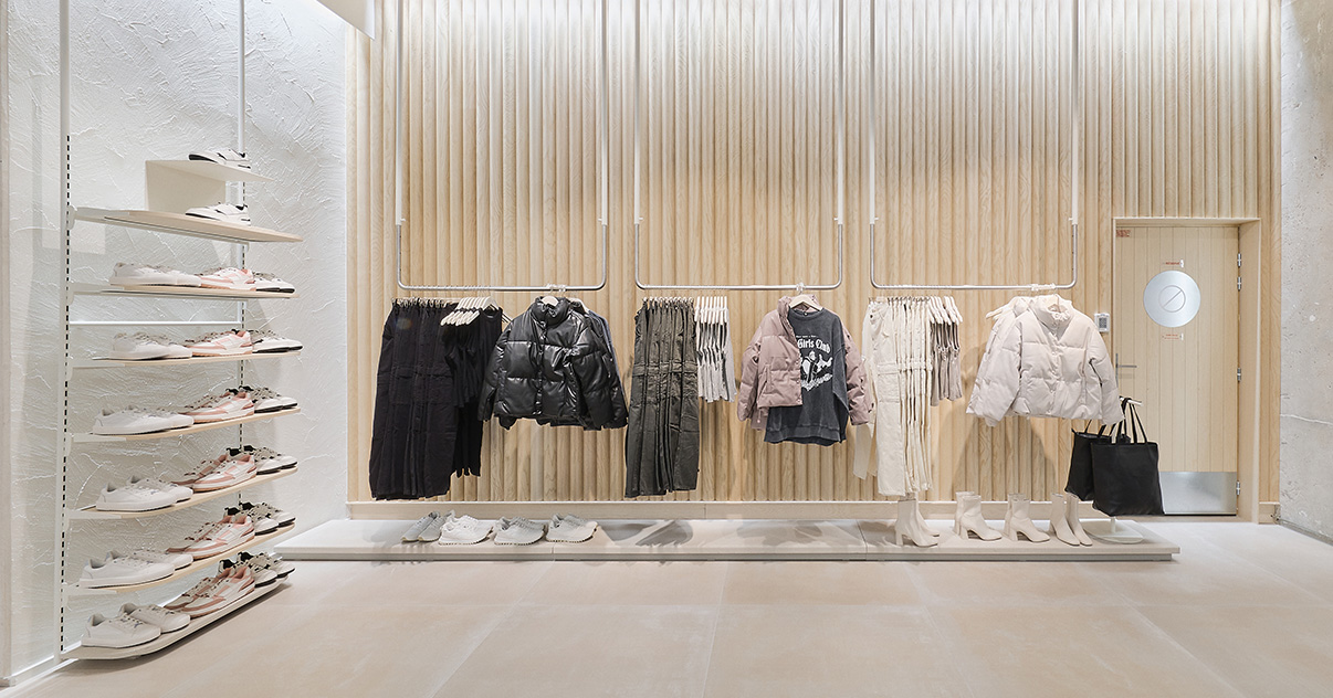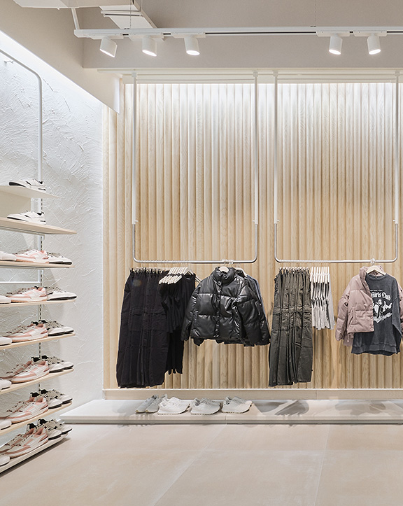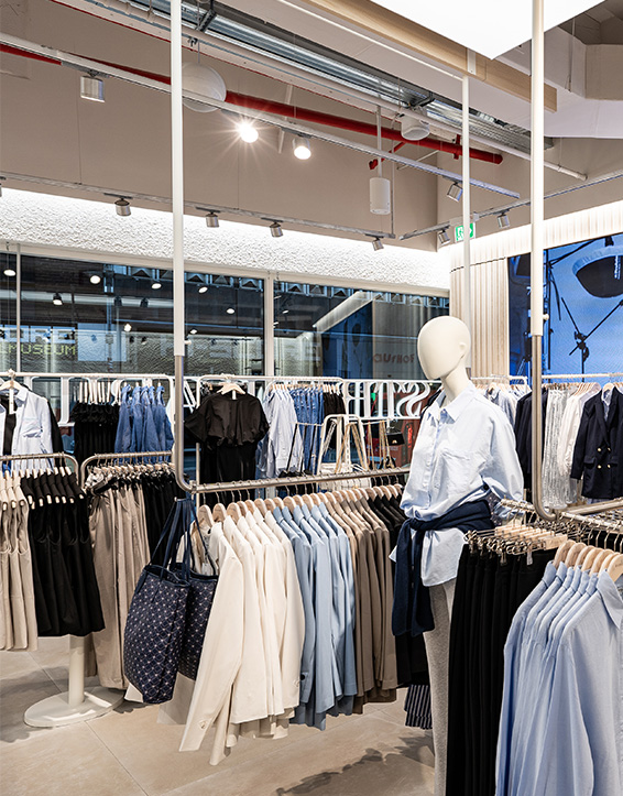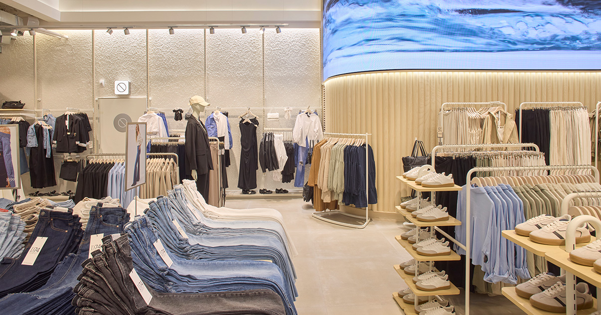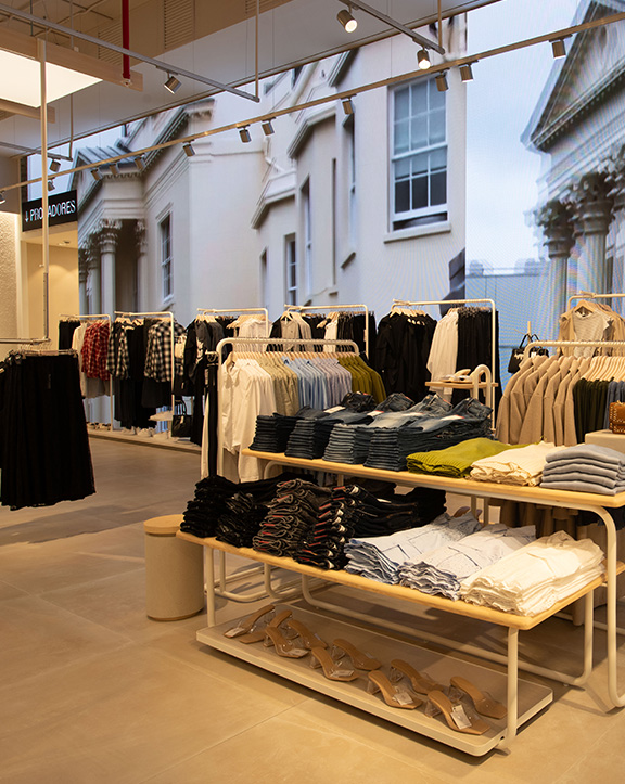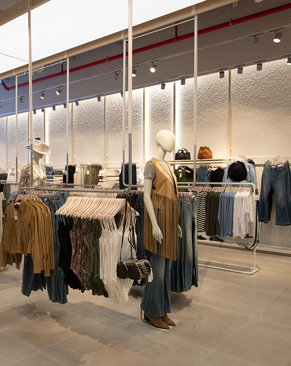 Nuestras tiendas están diseñadas para que moda y experiencia converjan. Si bien su diseño evoluciona para adaptarse a las necesidades de cada momento, nuestro concepto WAVE responde a una estética minimalista, de formas y acabados redondeados y con una paleta de blancos, grises y beiges.