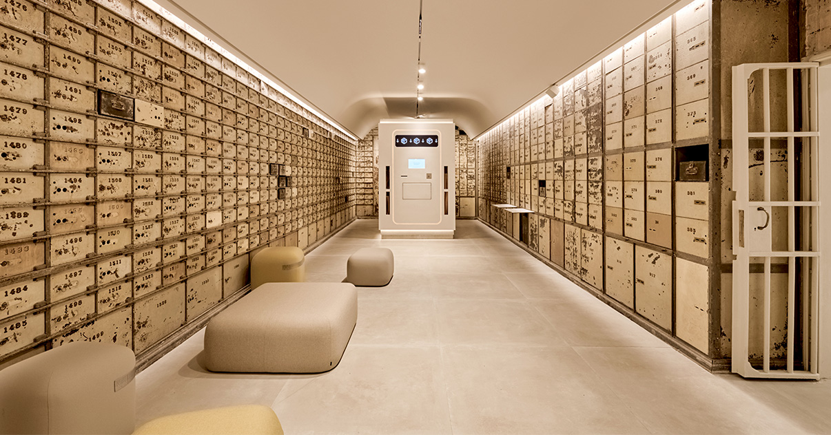 El mobiliario tiene líneas curvas que se inspiran en las olas del mar, mientras que las texturas y relieves de las paredes se funden con el suelo.