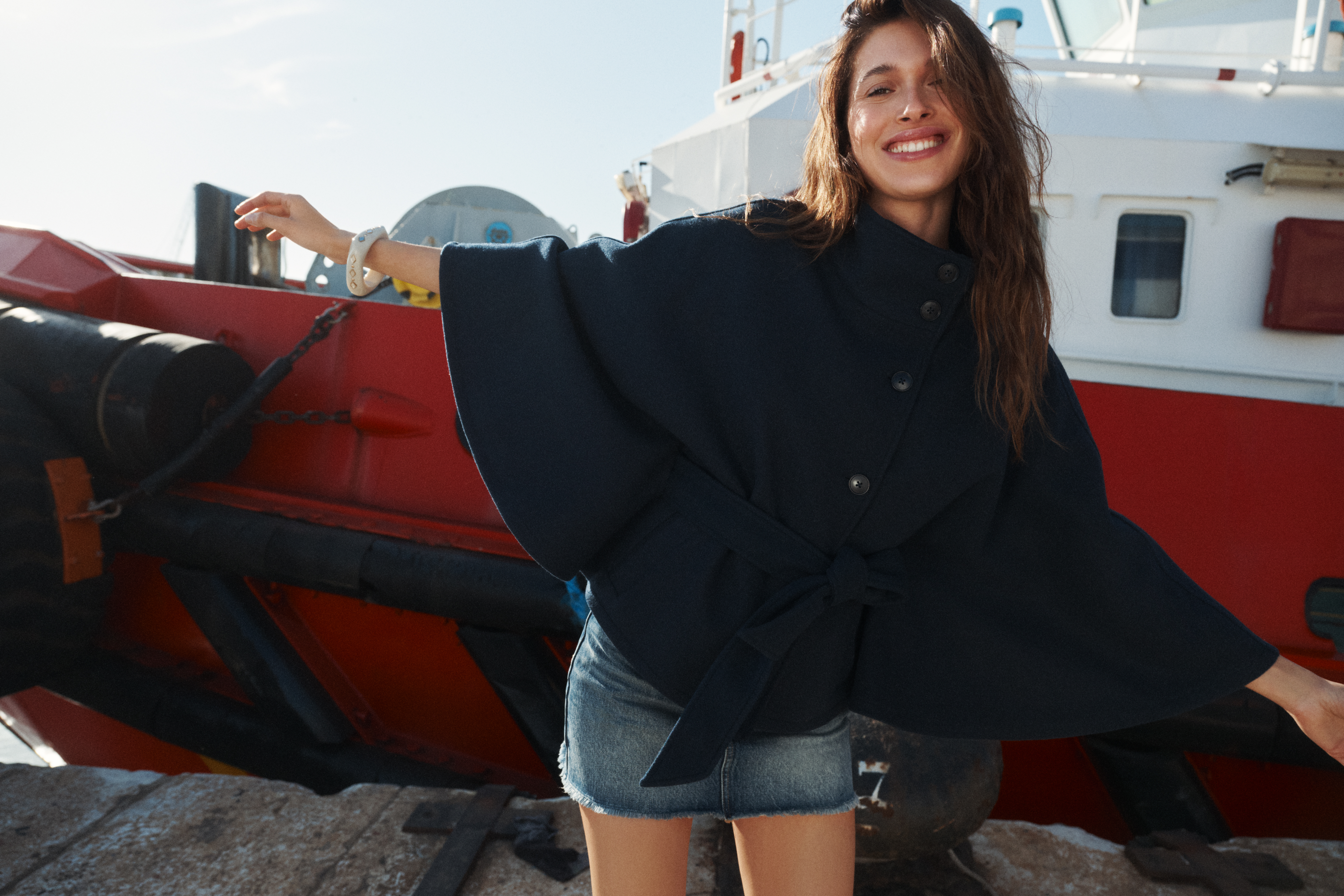 Stradivarius presenta su nueva campaña denim “La Chiamata”. En un entorno espontáneo y sin artificios, como un puerto, la protagonista de la editorial se muestra tal y como es: natural, divertida y auténtica, mientras habla por teléfono con su nonna. Una escena cotidiana que conecta moda, actitud y libertad.