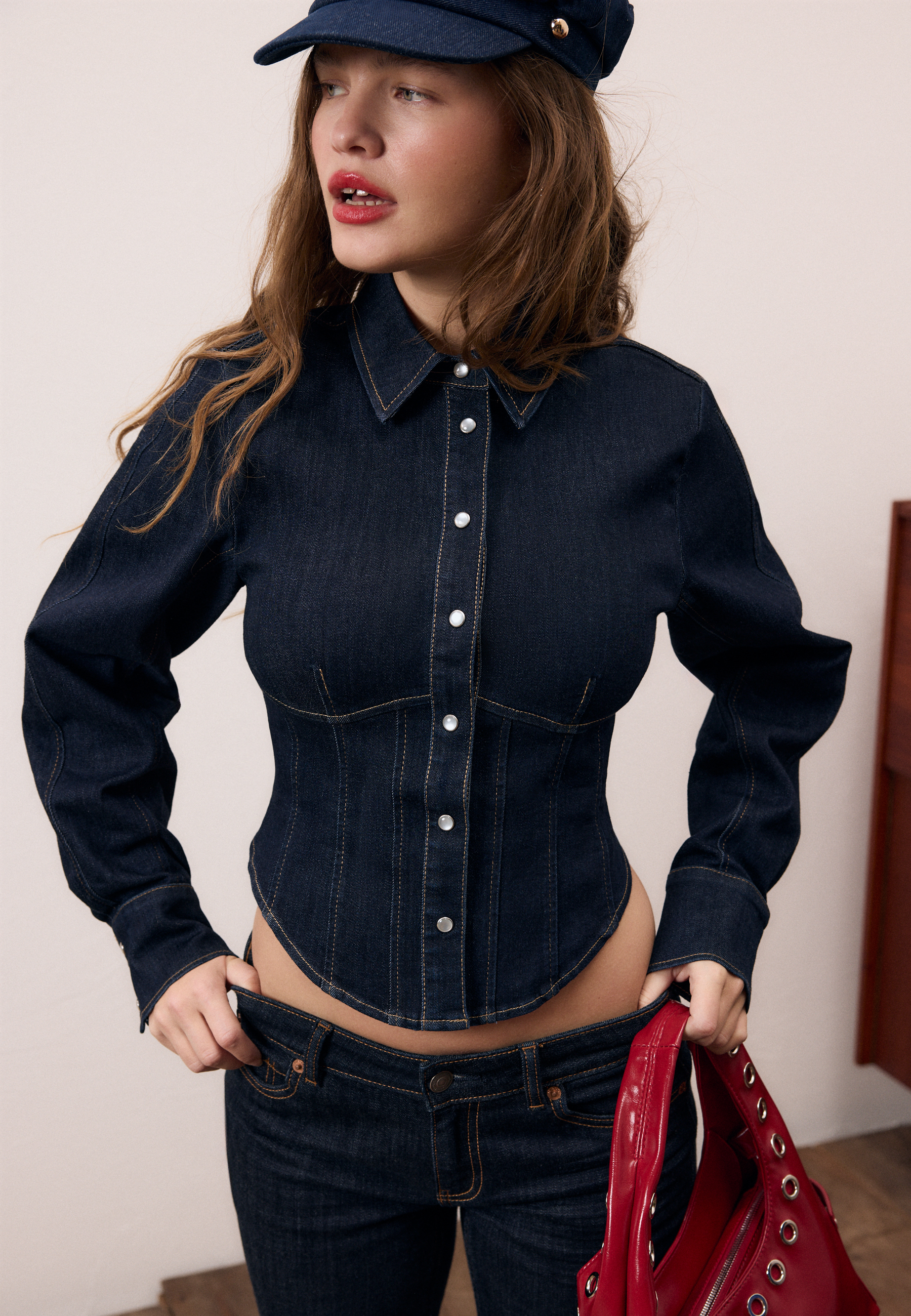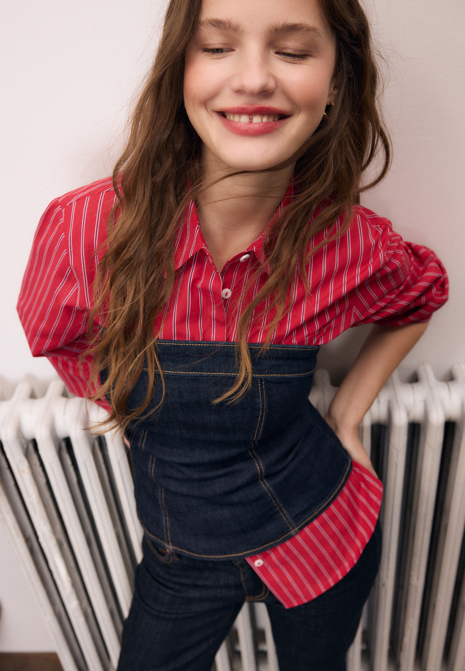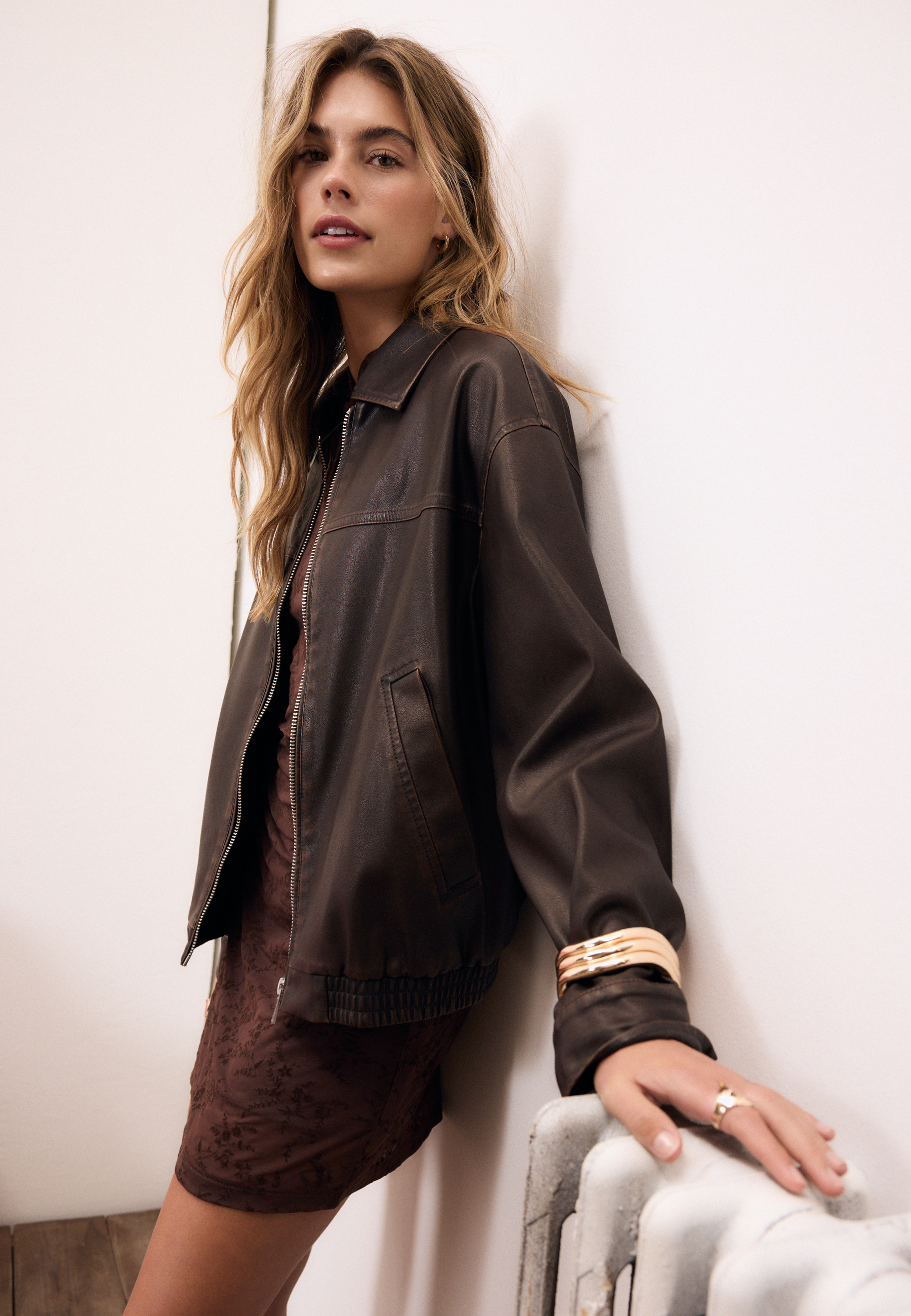 La colección se construye a partir de prendas esenciales con carácter, donde el denim y los tonos marrones son protagonistas. La funnel jacket se convierte en una de las piezas clave de la temporada, junto a vestidos mini, además de minifaldas, pantalones de silueta ancha y camisetas a rayas que se superponen. El layering cobra protagonismo y permite jugar con las prendas, creando looks versátiles que se adaptan al día a día con una actitud desenfadada y a la última tendencia.